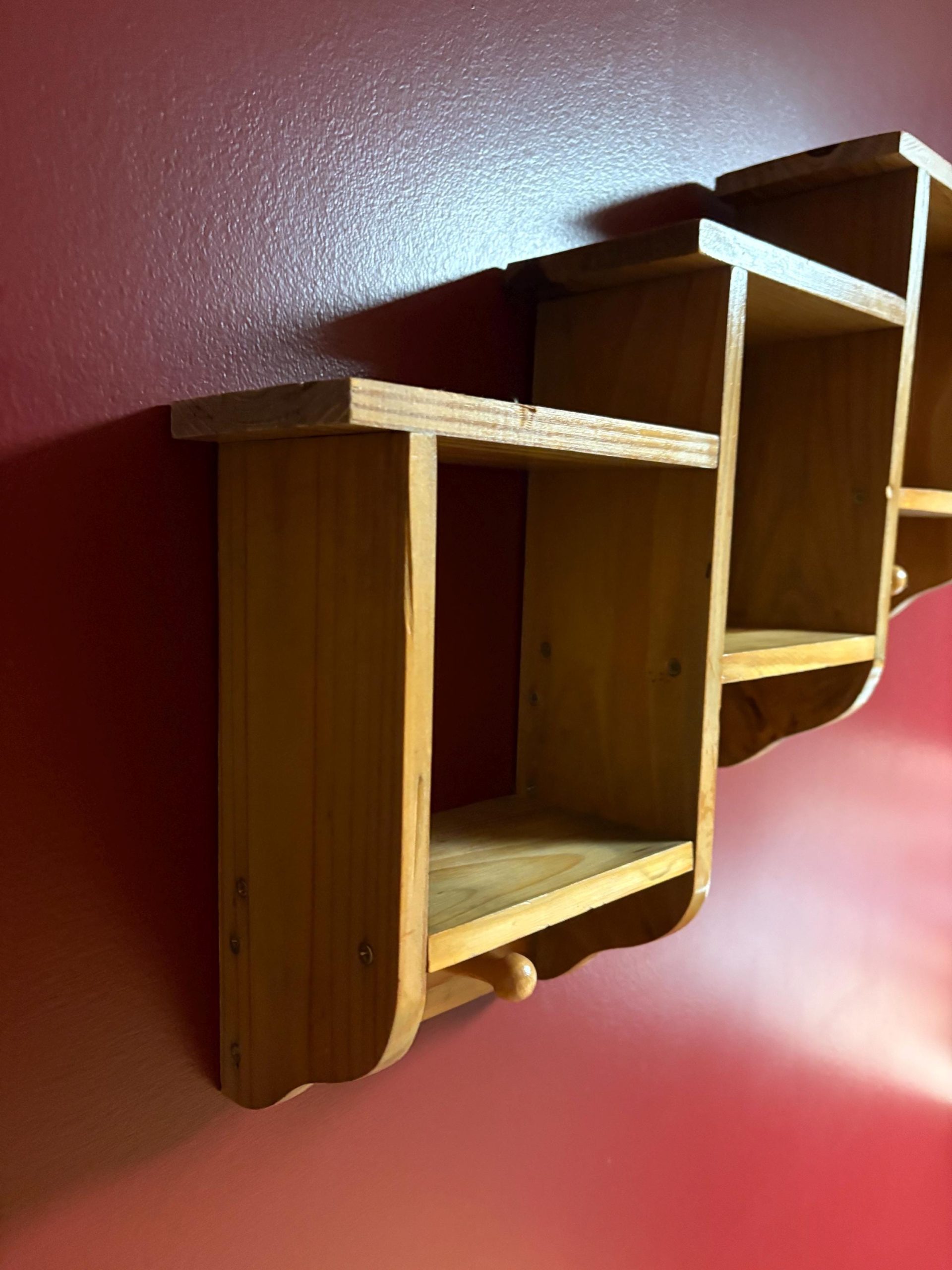 3 Tier wood 6 shelf with heart and pegs 20” x 16 1/2” X 4”