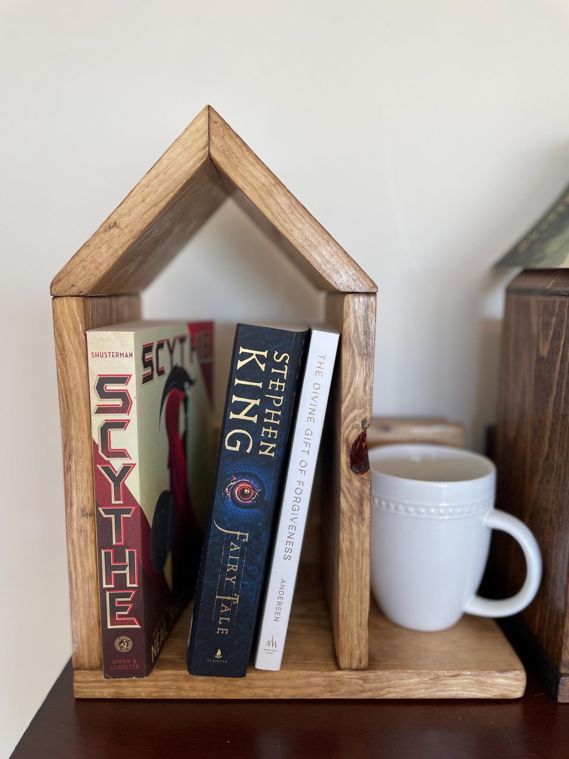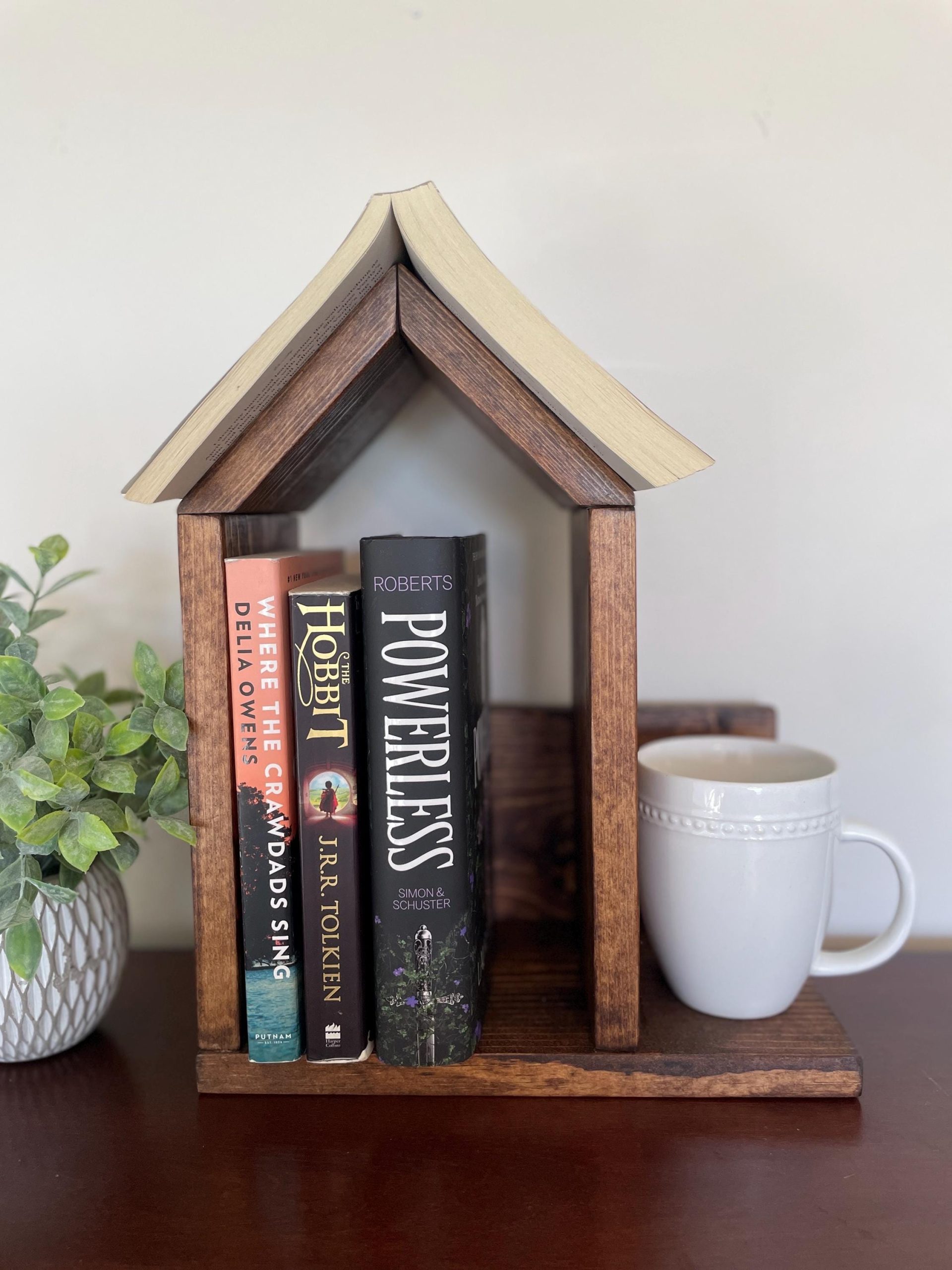 Book Lovers! This multi-purpose Book Nook fits perfectly on a nightstand or coffee stable. Great place to store your favorite books and hold your place!