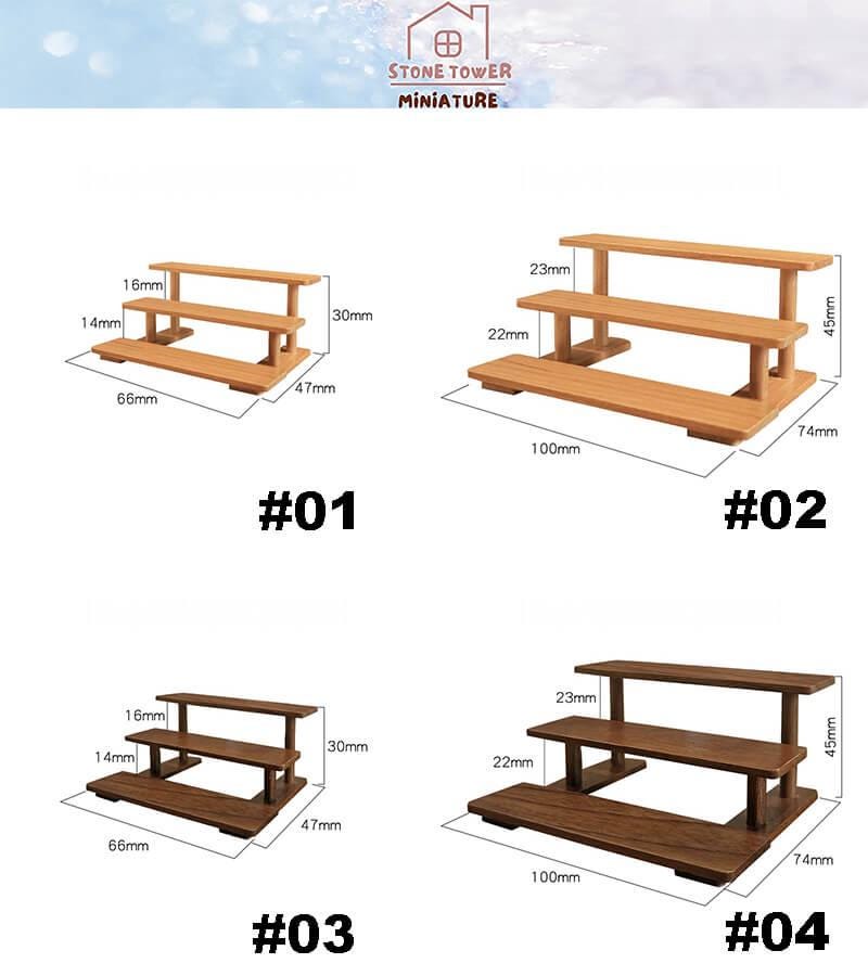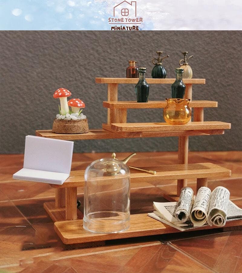 Dollhouse Miniature Wooden Display Shelf: Tiered Flower Stand