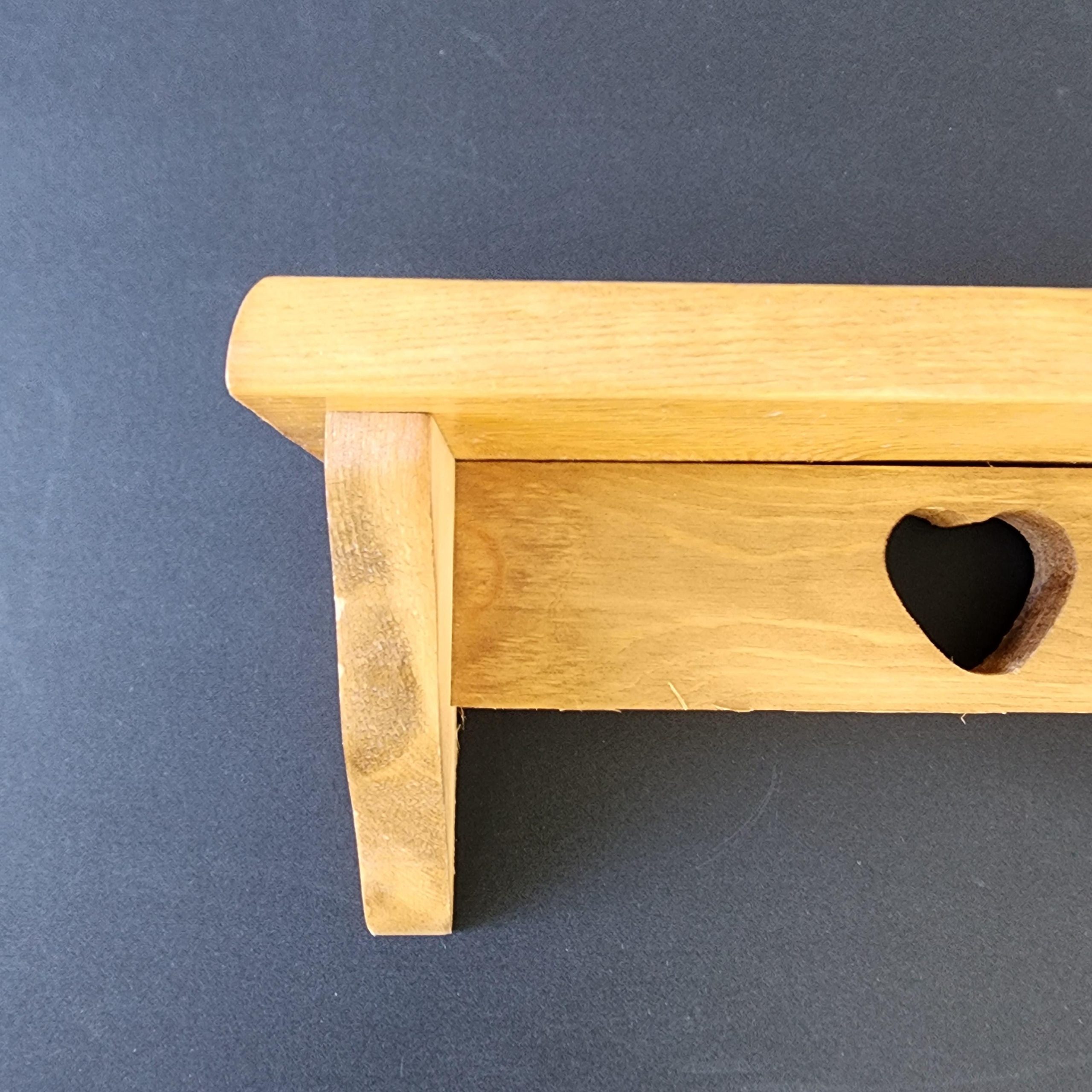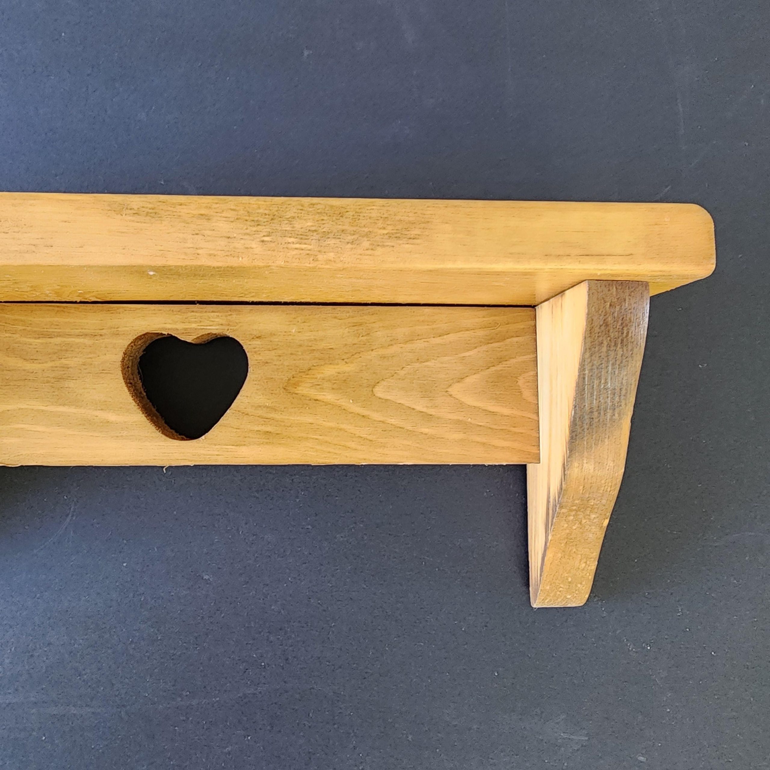 This charming vintage mini wooden wall shelf features a classic heart cutout design, adding a touch of warmth and nostalgia to your home décor. Crafted from solid wood, it has a rustic farmhouse aesthetic perfect for showcasing small treasures, candles, or seasonal accents. Ideal for a country kitchen, cozy cottage, or vintage-inspired space, this petite shelf brings handcrafted character and simple charm to any wall.