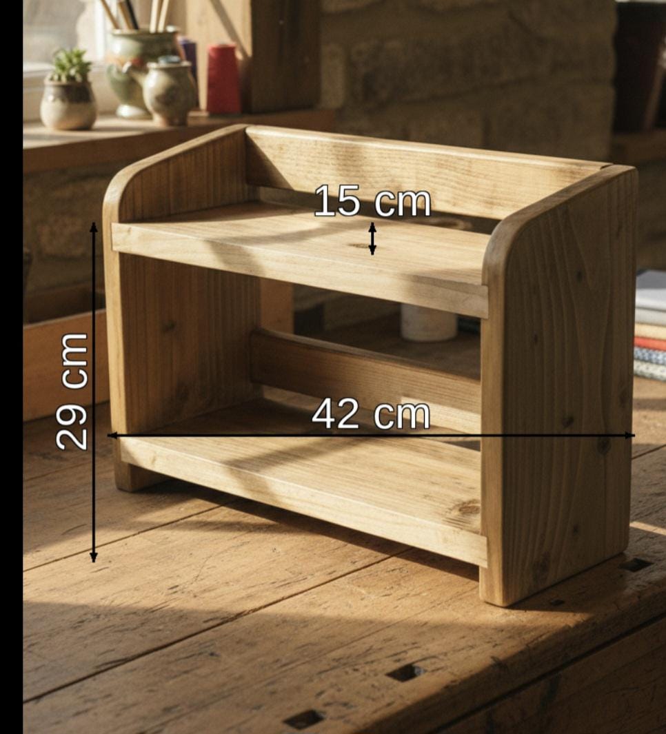 2-Tier Mini Rustic Organizer/Display Stand. Handmade from Thick Solid High Quality Wood.